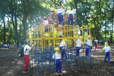 園にはないタイプのアスレチック遊具で、ダイナミックに遊んだり。