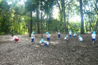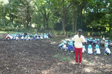 各学年、集合場所に分かれて、学年差に応じた距離で石神井公園に歩いて向かいました。