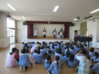 本園ホールにて、楽しい時間をお友達と、お部屋の先生と過ごしました。