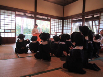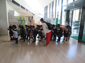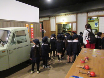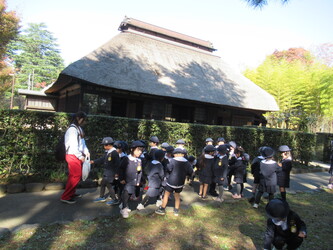 年中組の子供たちは、幼稚園バスに乗って石神井公園 ふるさと文化館に