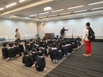 今日初めてふるさと文化館に行く子も、行ったことがある子も、館内で職員