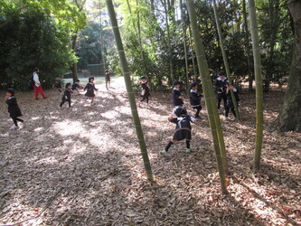 竹林にて「だ~る~まさんがこ~ろんだー!」