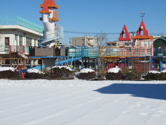 農園も、園庭も、アスレチック広場も、園舎周りも一面の銀世界❄